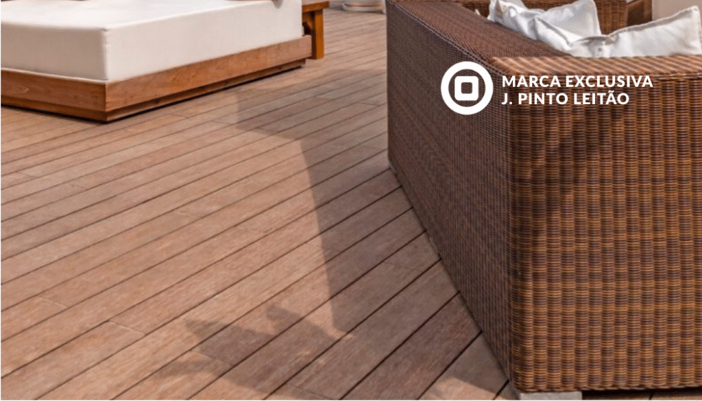 A J. Pinto Leitão foi o parceiro selecionado para recomendar todas as soluções. Além do deck, conta com sarrafo de madeira Okan e tábua envolvente em madeira maciça de Ipê.