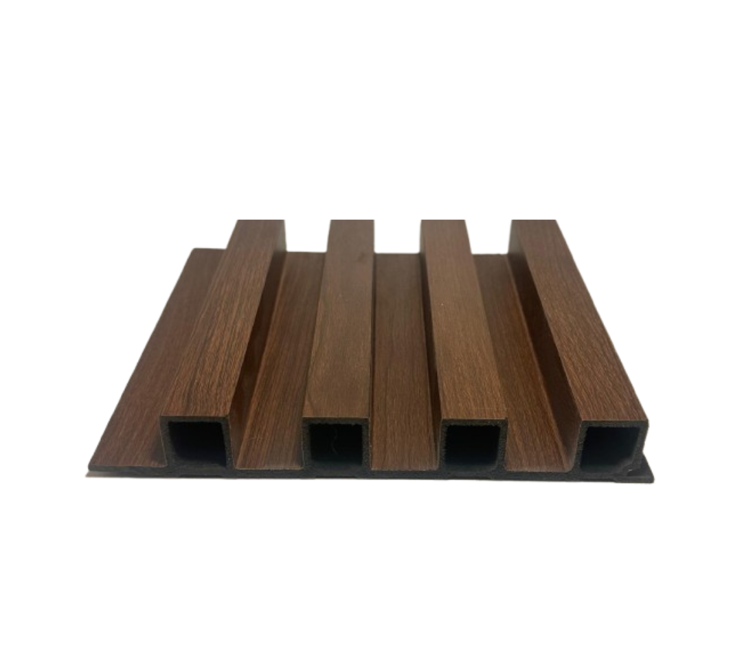 A ref.ª WPC 01 Valley Walnut dos Ripados WPC VITTAWALL combina as fibras naturais e polímeros para oferecer a beleza da